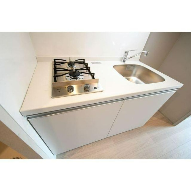 二人入居可、システムキッチン、給湯、CATV、宅配ボックス、駐輪場あり、バイク置き場あり、温水洗浄便座、浴室乾燥機、洗面所独立、防犯カメラ、クローゼット、シューズボックス、水道(公営)、ガス(都市)、排水(下水)、バス・トイレ別、シャワー、ガスコンロ、コンロ(二口)、エアコン、室内洗濯機置き場、オートロック、エレベータ有、バルコニー、フローリング、TVドアホン、インターネット使用料無料、最上階、礼金無し、敷金なし