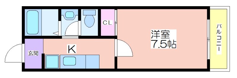 | 共益費:3,000円 | 専有面積:25㎡ 間取り詳細:洋室 7.5帖 |