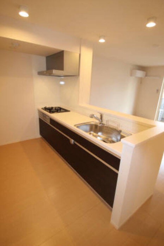 二人入居可、システムキッチン、給湯、追焚機能、シャワー付洗面化粧台、ウォークインクローゼット、BSアンテナ、宅配ボックス、駐輪場あり、温水洗浄便座、カウンターキッチン、浴室乾燥機、洗面所独立、クローゼット、シューズボックス、水道(公営)、ガス(都市)、排水(下水)、バス専用、バス・トイレ別、シャワー、ガスコンロ、コンロ(三口)、エアコン、室内洗濯機置き場、バルコニー、フローリング、TVドアホン、インターネット使用料無料、セキュリティ会社、最上階、敷金なし