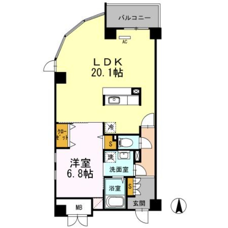 | 共益費:9,500円 | 専有面積:61.32㎡ 間取り詳細:LDK 20.1帖,洋室 6.8帖 |