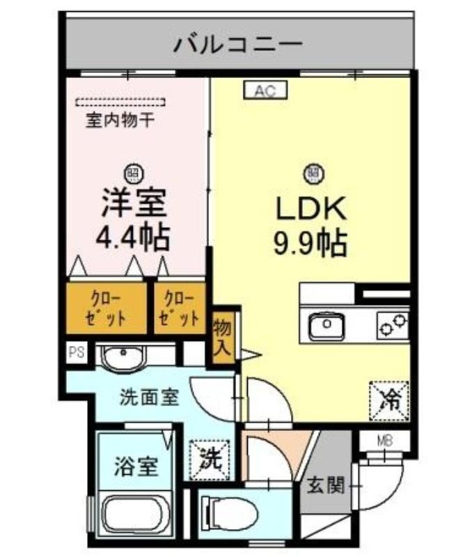 | 共益費:11,000円 | 専有面積:37.5㎡ 間取り詳細:LDK 9.9帖,洋室 4.4帖 |