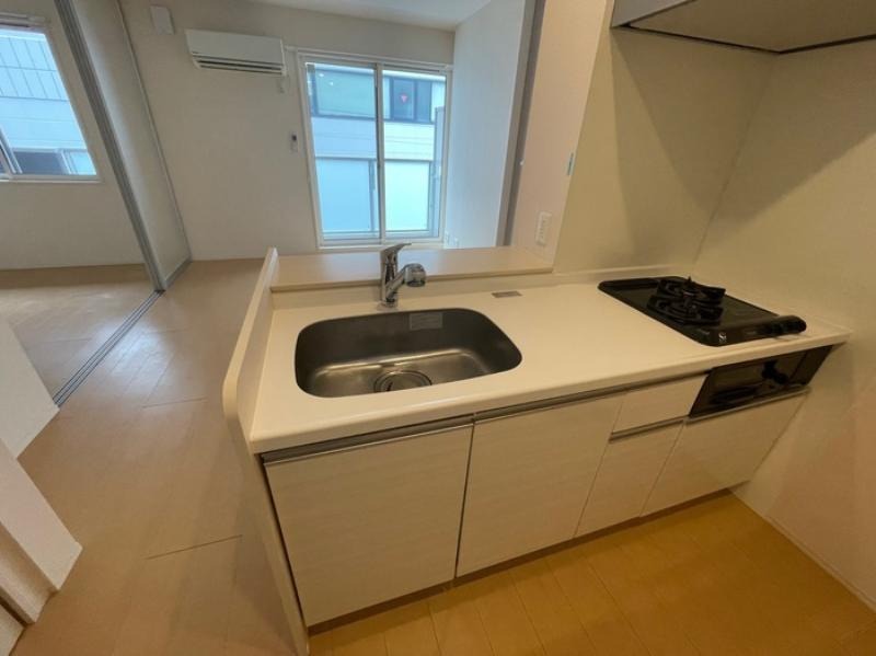二人入居可、システムキッチン、給湯、追焚機能、シャワー付洗面化粧台、BSアンテナ、宅配ボックス、駐輪場あり、温水洗浄便座、カウンターキッチン、浴室乾燥機、洗面所独立、クローゼット、シューズボックス、保証人不要、水道(公営)、ガス(都市)、排水(下水)、バス・トイレ別、シャワー、ガスコンロ、コンロ(二口)、エアコン、室内洗濯機置き場、オートロック、エレベータ有、バルコニー、フローリング、TVドアホン、インターネット使用料無料、セキュリティ会社、最上階、敷金なし