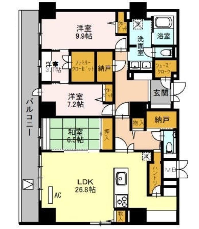 | 共益費:12,000円 | 専有面積:148.24㎡ 間取り詳細:LDK 26.8帖,洋室 7.2帖,洋室 3.1帖,和室 6.5畳 |