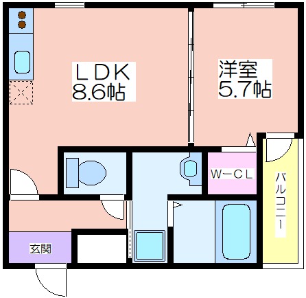 | 共益費:4,900円 | 専有面積:36.05㎡ 間取り詳細:LDK 8.6帖,洋室 5.7帖 |
