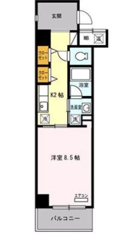 | 共益費:8,000円 | 専有面積:35.44㎡ 間取り詳細:K 2帖,洋室 8.5帖 |