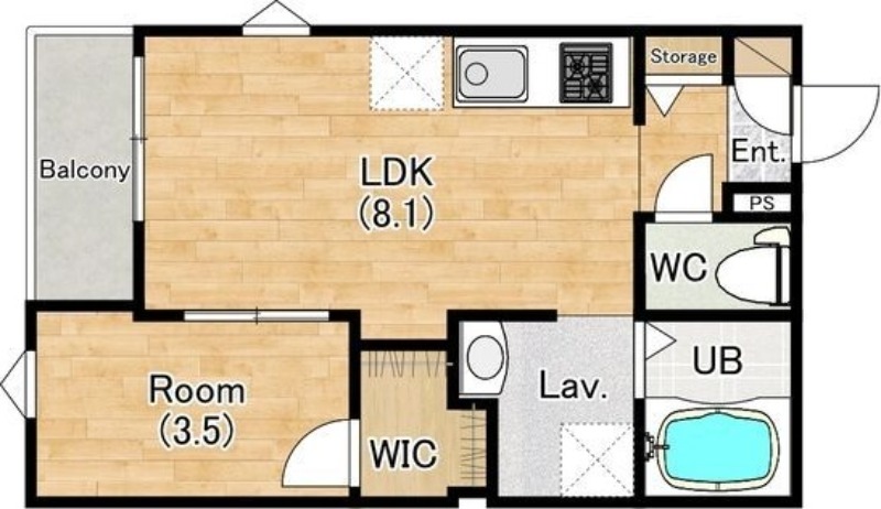 | 共益費:5,000円 | 専有面積:30.98㎡ 間取り詳細:LDK 8帖,洋室 4.1帖 |