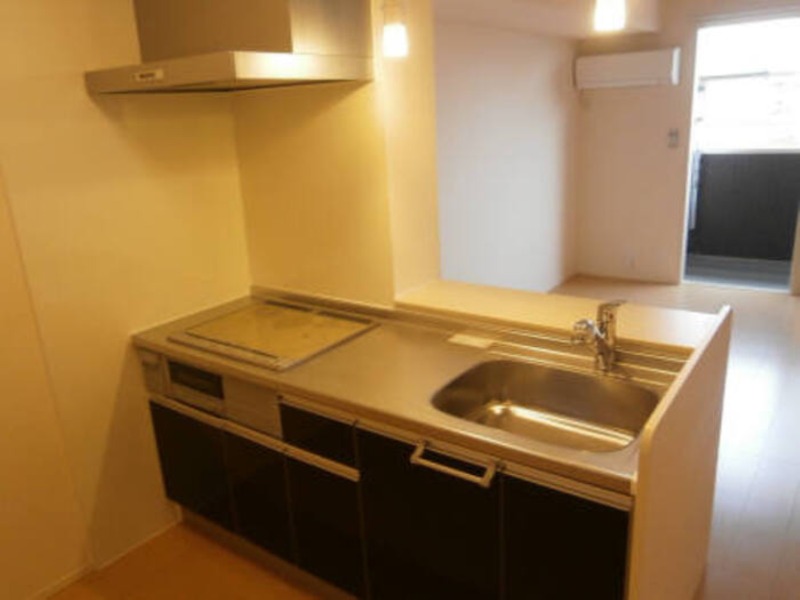 システムキッチン、給湯、シャワー付洗面化粧台、CATV、宅配ボックス、駐輪場あり、温水洗浄便座、カウンターキッチン、浴室乾燥機、洗面所独立、クローゼット、シューズボックス、保証人不要、水道(公営)、ガス(都市)、排水(下水)、バス・トイレ別、シャワー、IHコンロ、コンロ(三口)、エアコン、オートロック、バルコニー、フローリング、TVドアホン、インターネット使用料無料、最上階、敷金なし