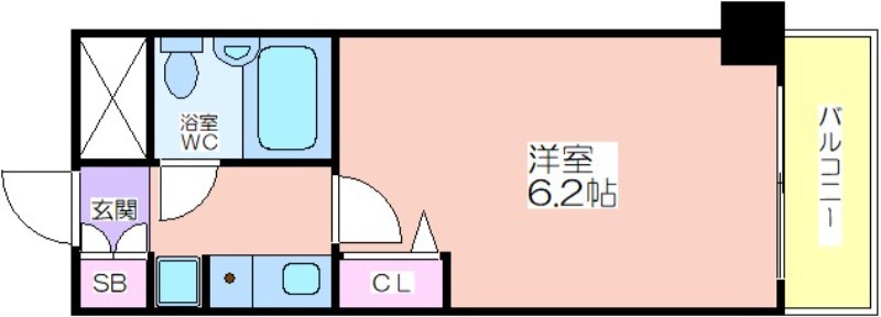 | 共益費:6,800円 | 専有面積:18.2㎡ 間取り詳細:洋室 6.2帖 |