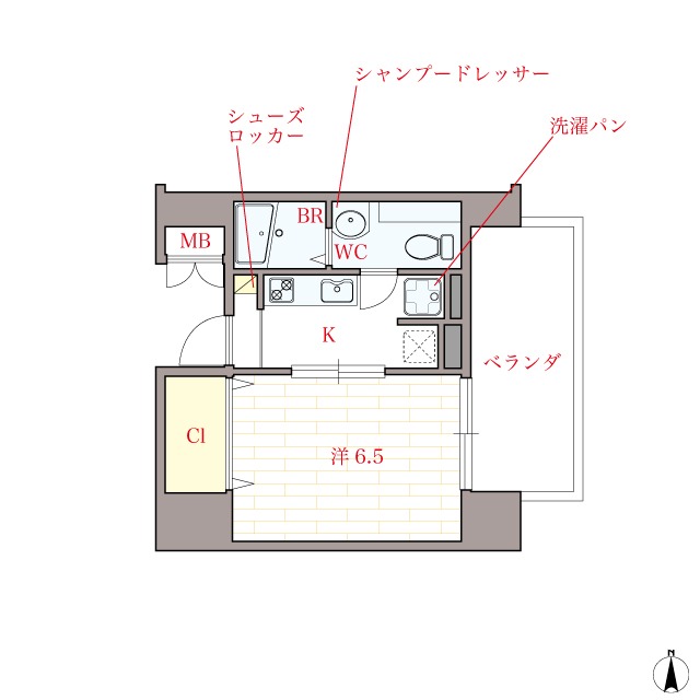 | 共益費:8,000円 | 専有面積:26.44㎡ 間取り詳細:洋室 6.5帖,K 2.5帖 |