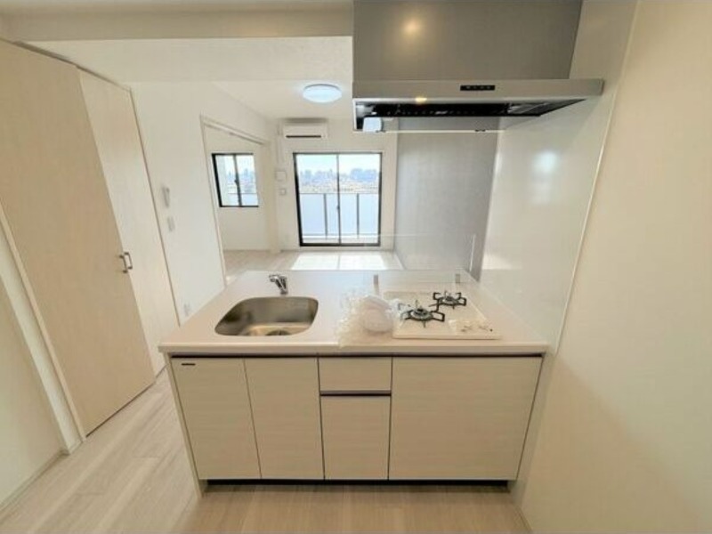 システムキッチン、給湯、ウォークインクローゼット、CSアンテナ、BSアンテナ、宅配ボックス、駐輪場あり、バイク置き場あり、温水洗浄便座、カウンターキッチン、浴室乾燥機、洗面所独立、シューズボックス、水道(公営)、ガス(都市)、排水(下水)、シャワー、ガスコンロ、コンロ(二口)、エアコン、室内洗濯機置き場、オートロック、エレベータ有、バルコニー、フローリング、TVドアホン、インターネット使用料無料、礼金無し、敷金なし