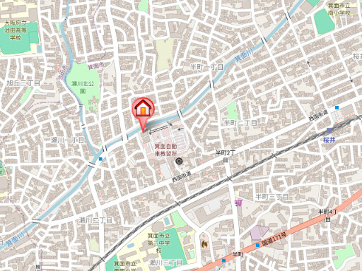 | 近隣情報 | 郵便局:箕面瀬川郵便局434m コンビニ:ファミリーマート箕面瀬川二丁目店460m スーパー:フレスコ桜井店566m 銀行:尼崎信用金庫箕面支店752m ドラッグストア:コジマドラッグ箕面店1012m ショッピングセンター:やまや阪急石橋店1375m |