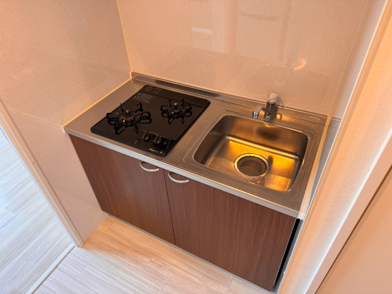 洗い場と2口こんろが備わったキッチンになっています。