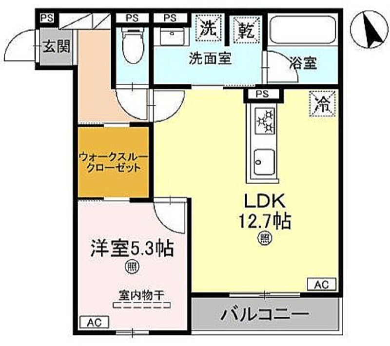 | 共益費:8,500円 | 専有面積:47.66㎡ 間取り詳細:LDK 12.7帖,洋室 5.3帖 |