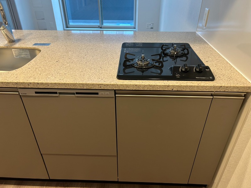 システムキッチン、給湯、追焚機能、シャワー付洗面化粧台、宅配ボックス、駐輪場あり、バイク置き場あり、角部屋、温水洗浄便座、カウンターキッチン、浴室乾燥機、洗面所独立、食器洗い乾燥機、防犯カメラ、クローゼット、シューズボックス、ペット相談、水道(公営)、ガス(都市)、排水(下水)、バス専用、バス・トイレ別、シャワー、ガスコンロ、エアコン、室内洗濯機置き場、オートロック、エレベータ有、バルコニー、フローリング、インターネット対応(光ファイバー)、TVドアホン、礼金無し、敷金なし
