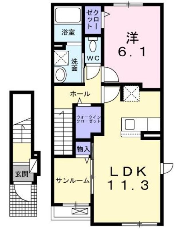 | 共益費:4,100円 | 専有面積:50.96㎡ 間取り詳細:洋室 6.1帖,LDK 11.3帖 |