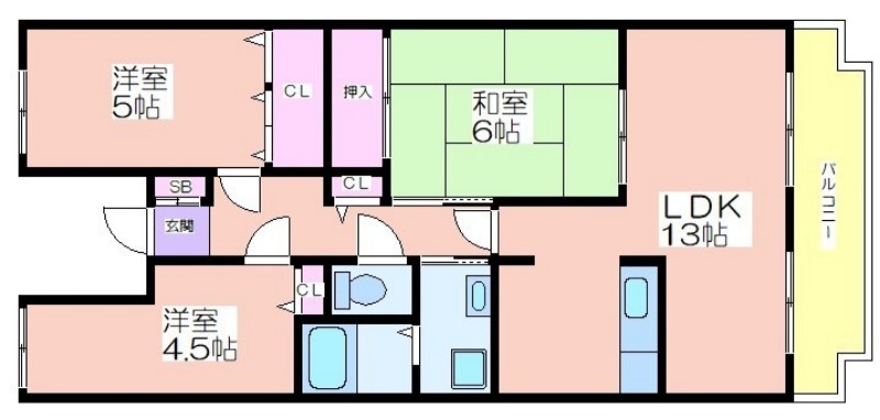 | 共益費:5,000円 | 専有面積:75.8㎡ 間取り詳細:LDK 13帖,洋室 4.5帖,洋室 5帖,和室 6畳 |