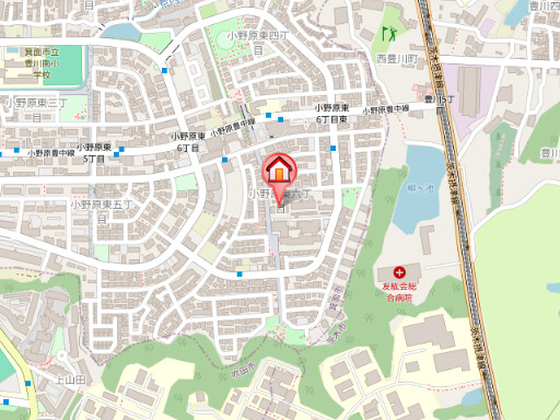 | 近隣情報 | スーパー:コーヨー小野原店415m 銀行:大阪信用金庫箕面支店564m ドラッグストア:ウエルシア箕面小野原東店609m コンビニ:ファミリーマート箕面小野原東店743m 病院:友紘会総合病院1062m 小学校:箕面市立豊川南小学校1262m |