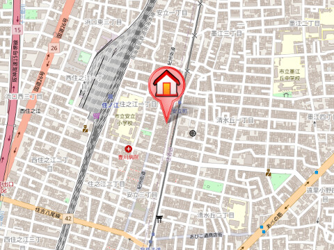 | 近隣情報 | 郵便局:住之江安立郵便局139m スーパー:関西スーパー住之江店215m コンビニ:セブンイレブン大阪安立3丁目店251m ドラッグストア:ココカラファイン南海住ノ江店371m 飲食店:ほっかほっか亭南海住ノ江店443m 役所:大阪市住之江区役所1057m ショッピングセンター:イオンモール堺鉄砲町2540m |