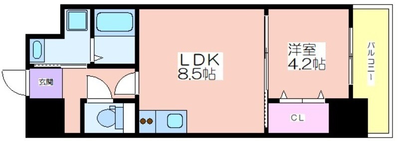 | 共益費:7,000円 | 専有面積:32.91㎡ 間取り詳細:LDK 8.5帖,洋室 4.2帖 |