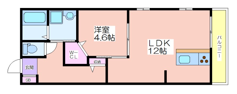メインの部屋が12畳の洋室になります。