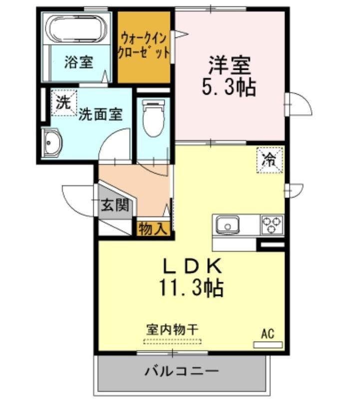 | 共益費:7,000円 | 専有面積:42.97㎡ 間取り詳細:LDK 11.3帖,洋室 5.3帖 |