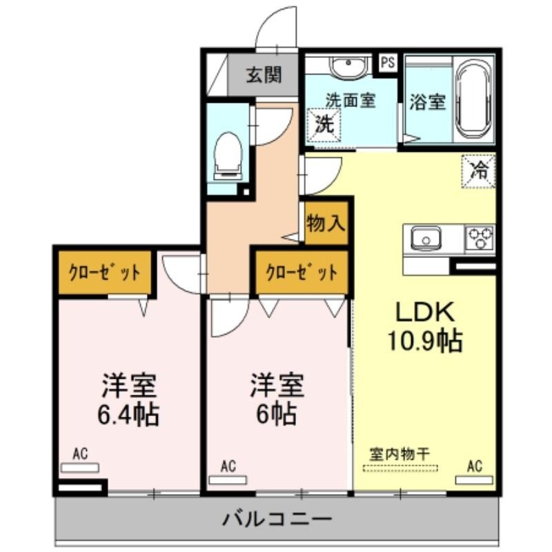 | 共益費:6,000円 | 専有面積:57.73㎡ 間取り詳細:LDK 10.9帖,洋室 6帖,洋室 6.4帖 |
