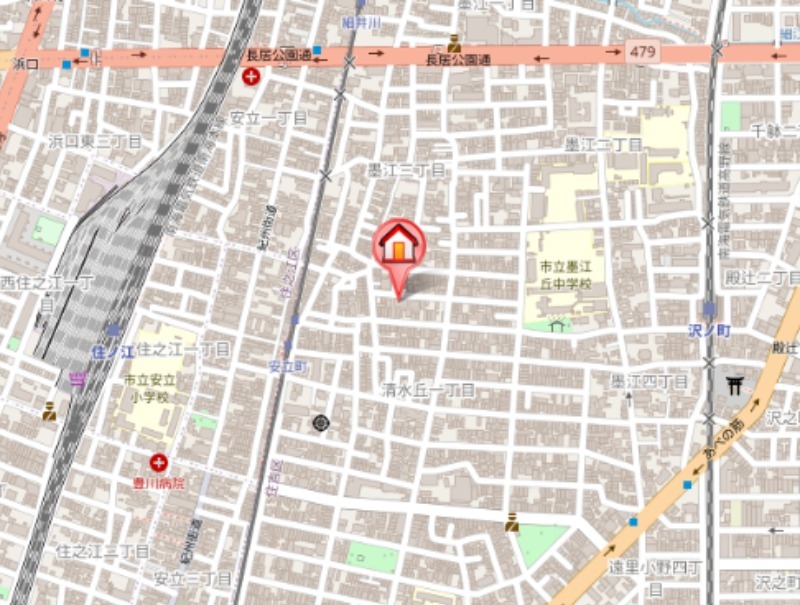 | 近隣情報 | 中学校:大阪市立墨江丘中学校204m コンビニ:セブンイレブン大阪安立2丁目店239m スーパー:サンディ住吉墨江店422m ドラッグストア:ココカラファイン南海住ノ江店528m 銀行:関西みらい銀行住吉中央支店696m 病院:医療法人讃和会友愛会病院773m |