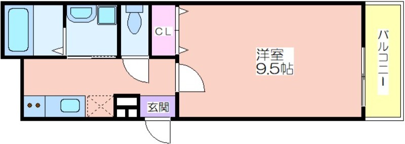 | 共益費:3,900円 | 専有面積:30.07㎡ 間取り詳細:洋室 9.5帖 |