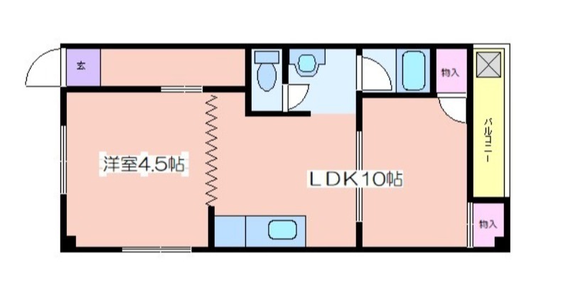 | 共益費:3,000円 | 専有面積:33.5㎡ 間取り詳細:LDK 10帖,洋室 4.5帖 |