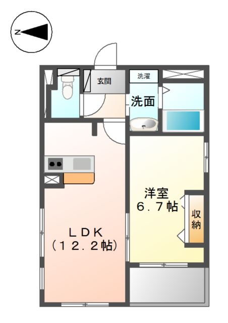| 共益費:8,000円 | 専有面積:48.38㎡ 間取り詳細:LDK 12.2帖,洋室 6.7帖 |