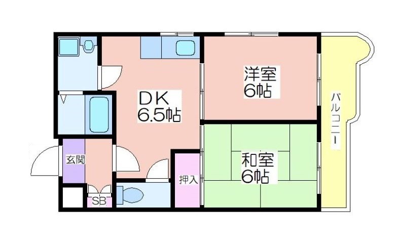 | 共益費:8,000円 | 専有面積:43㎡ 間取り詳細:DK 6.5帖,洋室 6帖,和室 6畳 |