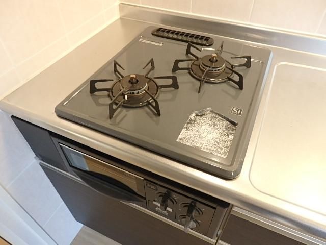 二人入居可、システムキッチン、給湯、追焚機能、シャワー付洗面化粧台、床下収納、CATV、CSアンテナ、BSアンテナ、駐輪場あり、角部屋、温水洗浄便座、浴室乾燥機、洗面所独立、防犯カメラ、クローゼット、シューズボックス、保証人不要、水道(公営)、ガス(都市)、排水(下水)、バス・トイレ別、シャワー、ガスコンロ、コンロ(二口)、エアコン、室内洗濯機置き場、オートロック、バルコニー、フローリング、インターネット対応(光ファイバー)、TVドアホン、礼金無し