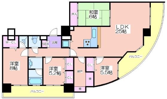 (LDK25帖、洋室8帖、洋室5.5帖、洋室5.2帖、納戸あり)