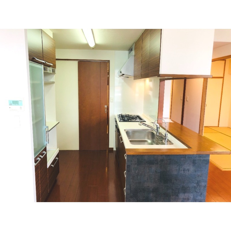 分譲賃貸、システムキッチン、給湯、追焚機能、CATV、宅配ボックス、駐輪場あり、バイク置き場あり、温水洗浄便座、カウンターキッチン、浴室乾燥機、キッズルーム、洗面所独立、防犯カメラ、クローゼット、シューズボックス、オートバス、保証人不要、水道(公営)、ガス(都市)、排水(下水)、バス専用、バス・トイレ別、シャワー、IHコンロ、コンロ(三口)、室内洗濯機置き場、オートロック、エレベータ有、バルコニー、フローリング、インターネット対応(光ファイバー)、TVドアホン、敷金なし