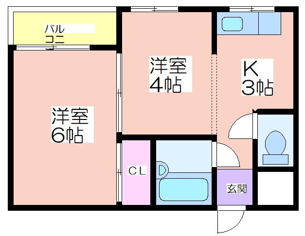 | 共益費:3,000円 | 専有面積:31㎡ 間取り詳細:洋室 6帖,洋室 4帖,K 3帖 |