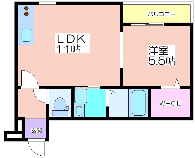 | 共益費:5,200円 | 専有面積:40.17㎡ 間取り詳細:LDK 11帖,洋室 5.5帖 |
