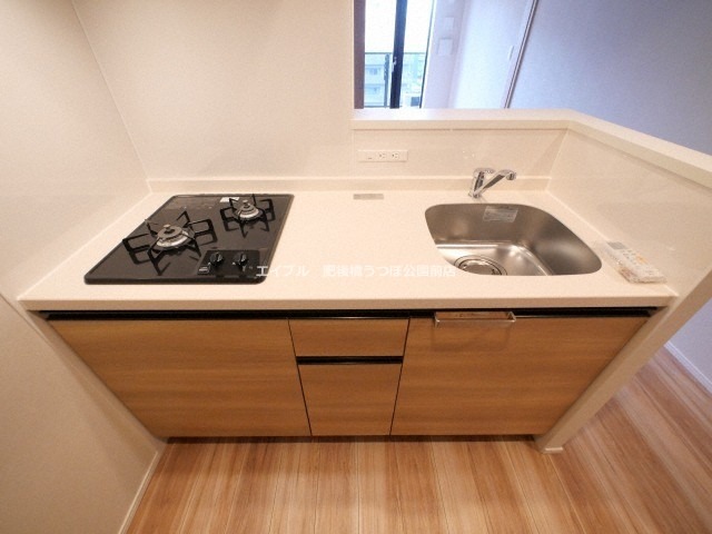 二人入居可、システムキッチン、給湯、シャワー付洗面化粧台、CSアンテナ、BSアンテナ、宅配ボックス、駐輪場あり、バイク置き場あり、温水洗浄便座、カウンターキッチン、浴室乾燥機、洗面所独立、防犯カメラ、クローゼット、シューズボックス、水道(公営)、ガス(都市)、排水(下水)、バス・トイレ別、シャワー、コンロ(二口)、エアコン、室内洗濯機置き場、オートロック、エレベータ有、バルコニー、フローリング、TVドアホン、インターネット使用料無料、敷金なし