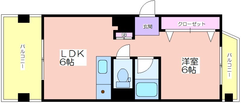 間取りは1LDKタイプ(LDK6帖、洋室6帖)