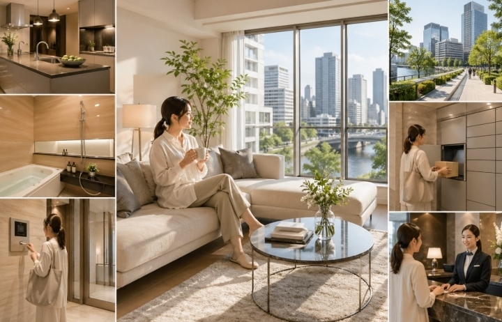 肥後橋の高価格帯築浅物件には、コンシェルジュサービスや内廊下設計を採用したタワーマンションが複数存在します。コンシェルジュ付き物件では宅配の再配達対応や来客管理を代行してくれるため、多忙なビジネスパーソンにとっての時間節約効果は絶大です。内廊下設計は外部の天候や騒音の影響を受けにくく、プライバシーと快適性を高水準で維持できる点も、選ばれる理由として挙げられます。