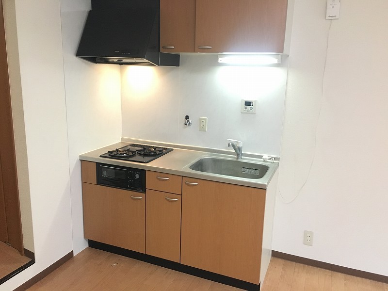 システムキッチン、クローゼット、保証人要、水道(公営)、ガス(都市)、排水(下水)、バス・トイレ別、ガスコンロ、コンロ(二口)、エアコン、室内洗濯機置き場、オートロック、バルコニー、フローリング、敷金なし