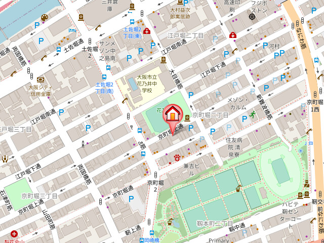 | 近隣情報 | コンビニ:ローソン京町堀3丁目店74m 病院:永田医院143m 中学校:大阪市立花乃井中学校259m スーパー:ライフビオラル靭店363m ドラッグストア:ドラッグアカカベ阿波座店375m 銀行:大阪シティ信用金庫江戸堀支店390m 郵便局:大阪西郵便局637m 小学校:大阪市立西船場小学校645m |