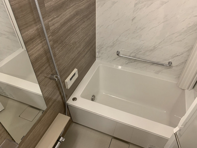二人入居可、分譲賃貸、システムキッチン、シャワー付洗面化粧台、ウォークインクローゼット、CATV、宅配ボックス、駐輪場あり、温水洗浄便座、カウンターキッチン、浴室乾燥機、洗面所独立、防犯カメラ、シューズボックス、保証人要、水道(公営)、ガス(都市)、排水(下水)、バス・トイレ別、シャワー、ガスコンロ、コンロ(二口)、エアコン、室内洗濯機置き場、オートロック、エレベータ有、バルコニー、フローリング、インターネット対応(光ファイバー)、ごみ出し24時間OK、敷金なし