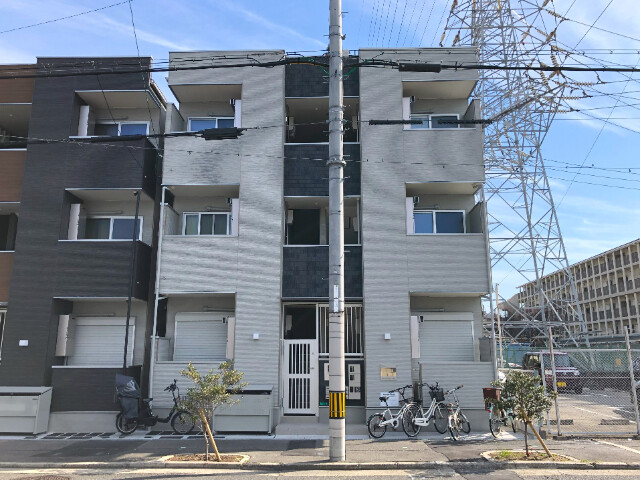住之江区安立1丁目新築アパート募集開始しました。最寄りは南海本線「住ノ江駅」徒歩6分地上3階建て・木造アパート オートロック、防犯カメラ付きでセキュリティー面OK間取りは全室1LDKタイプ白..