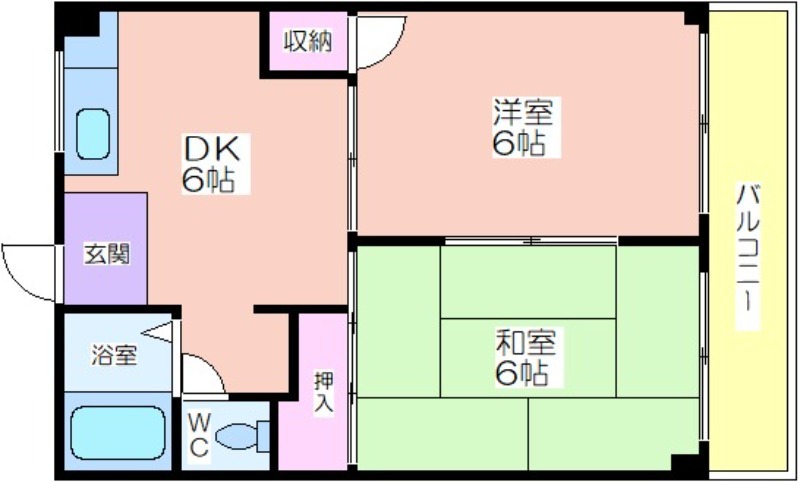 敷/礼 - 間取り 2DK