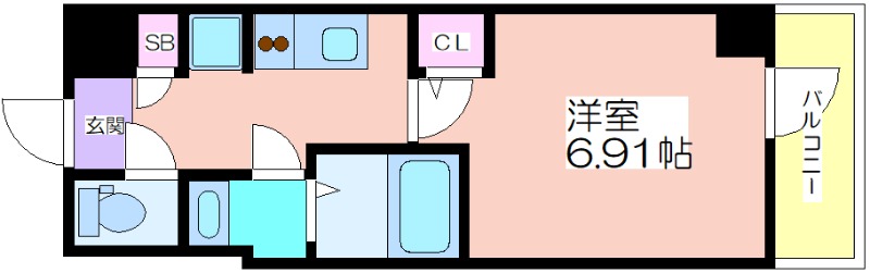 間取り / 広さ 1K / 22.49㎡ 所在階数 6階 向き