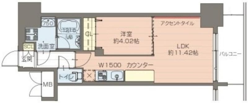 1LDK (46.56㎡) / 4階 |