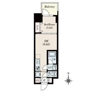 | 間取り / 広さ | 1DK / 25.42㎡ | 所在階数 | 6階 | 向き | 北 |