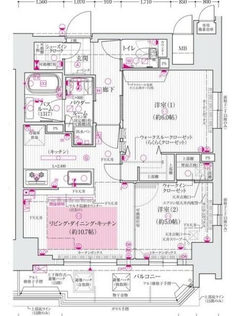 | お部屋の設備サービス | ウォークインクローゼット、角部屋、床暖房、クローゼット、シューズボックス、室内洗濯機置き場、バルコニー、フローリング |