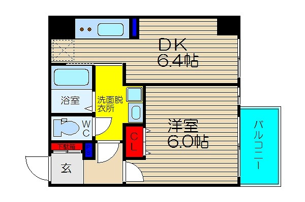 | 間取り / 広さ | 1DK / 31.44㎡ | 所在階数 | 6階 | 向き | 南東 |