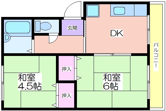 広さはDK、和室6帖、和室4.5帖